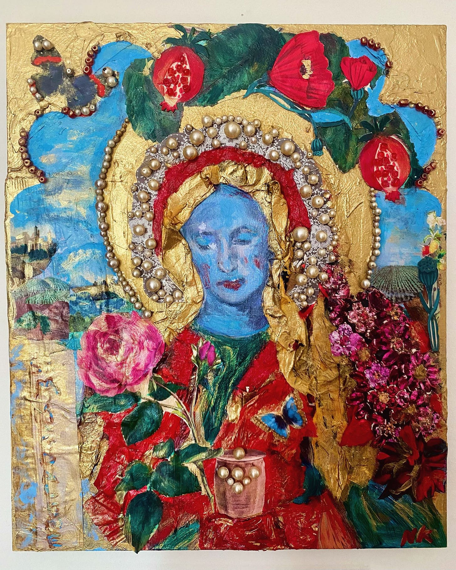 It’s been a while since I wrote anything. Not just here, anywhere. Even the notebooks have been lying like lined fallow fields, my notes app has one deranged poem that came to me in sleep paralysis from the point of view of an ancient spider. So far, so normal. Instead, I’ve been working away at some art, like this one. I’m at the ‘collage icons of Mary Magdalene’ stage of whatever is happening with me and it’s hugely enjoyable to unhook my brain from the snarl of unwritten words and do this with it instead.